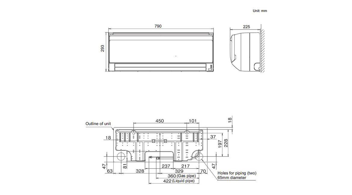 | Indoor Unit Dimensions mm (Height x Width x Depth) | 293 x 790 x 225 |