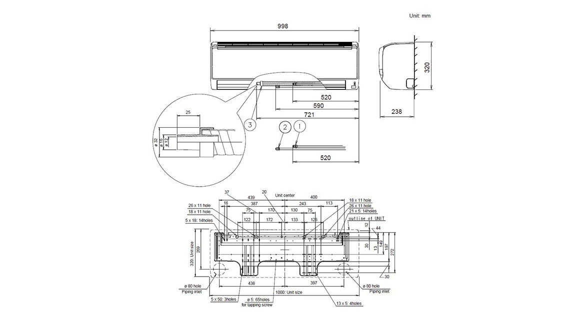 | Indoor Unit Dimensions mm (Height x Width x Depth) | 320 x 998 x 238 |
